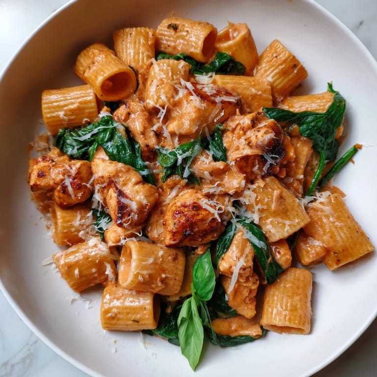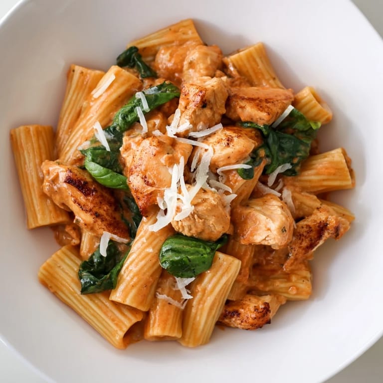 Rotisserie chicken shaves off 10 minutes and tastes just as good—I use it when I'm tired but still want to look like I tried. Chicken thighs are juicier than breasts if you don't mind a tiny bit more fat. For a lighter version, use half-and-half instead of heavy cream, though you'll notice the sauce is thinner and less luxurious. Arugula wilts faster than spinach if you forget and add it late, and sun-dried tomatoes add richness without extra cooking.
