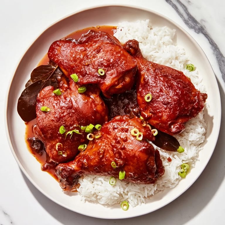 Pin it My aunt's kitchen in Manila smelled like a thousand dinners at once—vinegar and soy sauce cutting through the heat, garlic browning in hot oil. She taught me adobo the way she learned it, never from a recipe, just watching her hands move and tasting as she went. Years later, I made it in my own kitchen with bone-in thighs that crisped up golden, and suddenly I understood why this dish has survived centuries of family tables. It's not fancy or complicated, but it has a way of feeling like home in a single bowl.