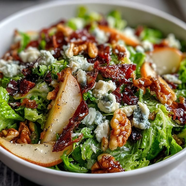 Pin it My colleague Marco once brought this salad to a potluck, and I watched people go back for thirds, which never happens with salads. He'd learned it while consulting in Lyon, where a bistro chef showed him that the trick wasn't fancy technique but respecting each ingredient enough to let it shine. The bitter frisée, the crispy prosciutto, the tangy blue cheese and sweet pears all seemed to have their own conversation on the plate. When I finally made it at home one autumn evening, I understood why Marco couldn't stop raving about it.