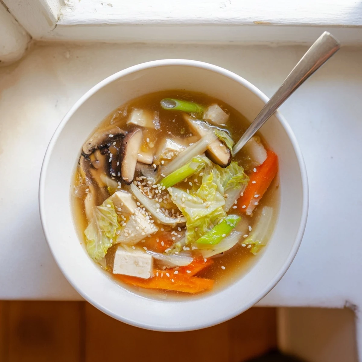 Pin it By infusing the broth with thin slices of ginger and garlic, you create a savory base that perfectly complements tender winter vegetables like napa cabbage and julienned carrots.