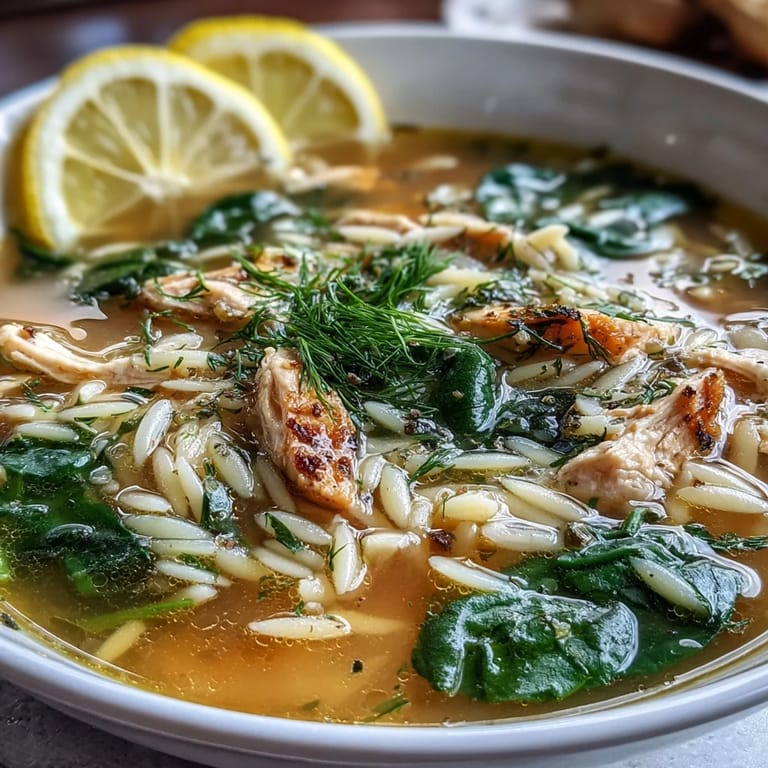 There's a Mediterranean lightness to this that makes it feel like you're eating something nourishing rather than heavy. The lemon cuts through the richness of the chicken broth in a way that makes you want another spoonful, and the spinach adds a nutritional boost that feels almost accidental because it's so seamlessly woven in. It's the kind of soup that works equally well as a quick lunch or a proper dinner, depending on what you serve alongside it.