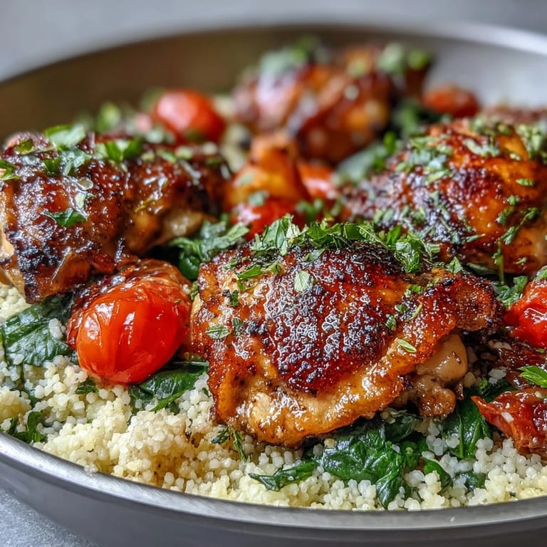 Pin it A weeknight dinner rushed toward me one Tuesday when I'd promised friends would eat at my place, and I had exactly what was in my fridge—chicken thighs, a stick of butter, garlic that had been sitting around, and a box of couscous. There's something about combining everything in one pan that felt like cheating on a proper meal, yet forty minutes later, something magical had happened. The butter had caught the garlic, the chicken had turned golden, and the couscous had absorbed all that savory promise into fluffy grains that tasted like someone had been tending a Mediterranean kitchen all afternoon. That night taught me that simplicity isn't about cutting corners—it's about knowing which corners don't matter.