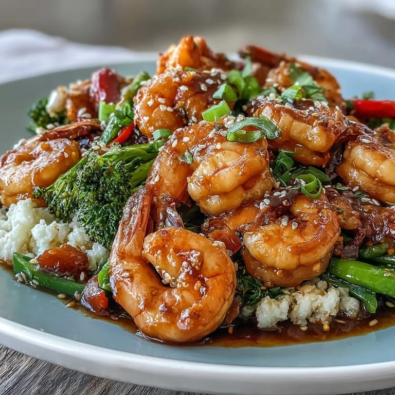 Pin it Tuesday nights used to mean takeout containers and chopstick fumbling until I realized how simple it is to make stir-fry at home in less time than delivery takes to arrive. There's something almost meditative about the quick sizzle of shrimp hitting a hot pan, the way the kitchen fills with ginger and garlic steam before you even finish chopping. This particular version came together one evening when I wanted something light but satisfying, and cauliflower rice felt like the perfect canvas for all those vibrant vegetables and that glossy, tangy sauce.