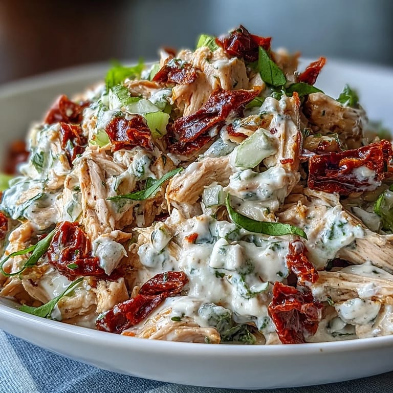 Pin it The first time I made this chicken salad was actually by accident. I had leftover rotisserie chicken from a dinner party and a random assortment of ingredients in my fridge, including this jar of sun-dried tomatoes I'd bought on impulse. Within minutes of tossing everything together, I took one bite and immediately cancelled my lunch plans for the next three days.